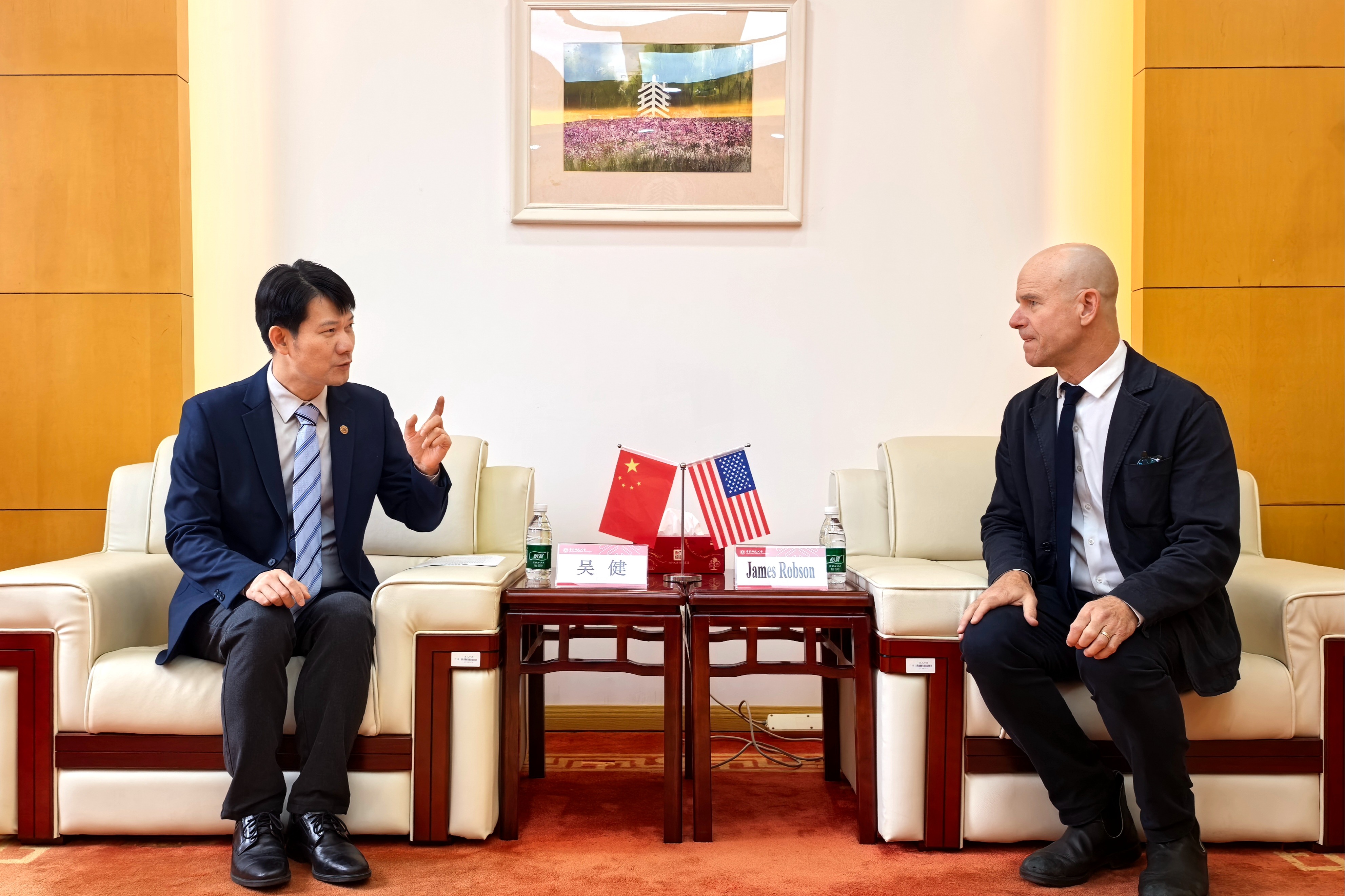 会谈伊始,吴健高度肯定哈佛燕京学社作为中美人文交流重镇的突出地位,及其深耕东亚人文社科研究的核心使命与前瞻跨学科视野。他回顾双方长期紧密务实的合作,并期待双方未来在更多跨学科领域持续深化合作。罗柏松积极回应,他表示,华东师大突出的人文社科地位和高质量访问学者为国际学界了解东亚文明提供了独特视角,未来将进一步助推双方实现学术同频共振。