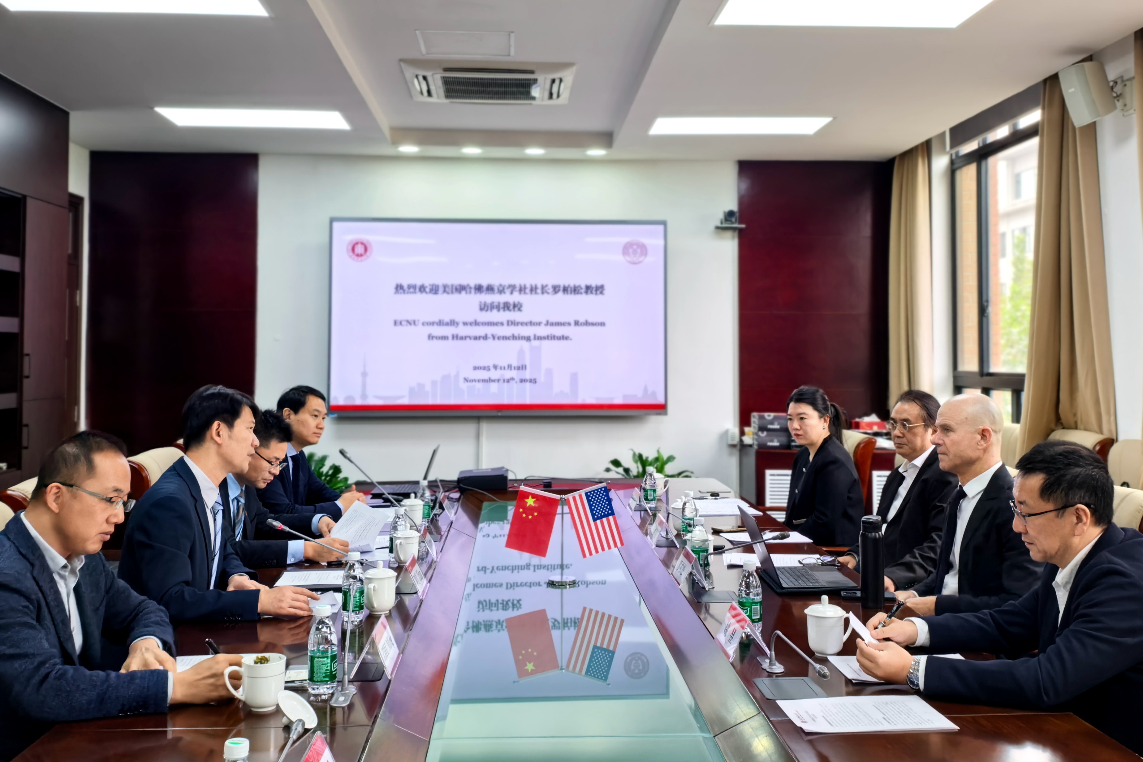 11月12日,华东师大副校长吴健会见了到访的美国哈佛燕京学社(Harvard-Yenching Institute)社长、哈佛大学东亚语言文明系教授罗柏松(James Robson)。双方围绕联合举办研修班、开展中西文明互鉴研究等议题展开深度对话,历史学系、哲学系、国际合作与交流处等部门代表陪同会见。