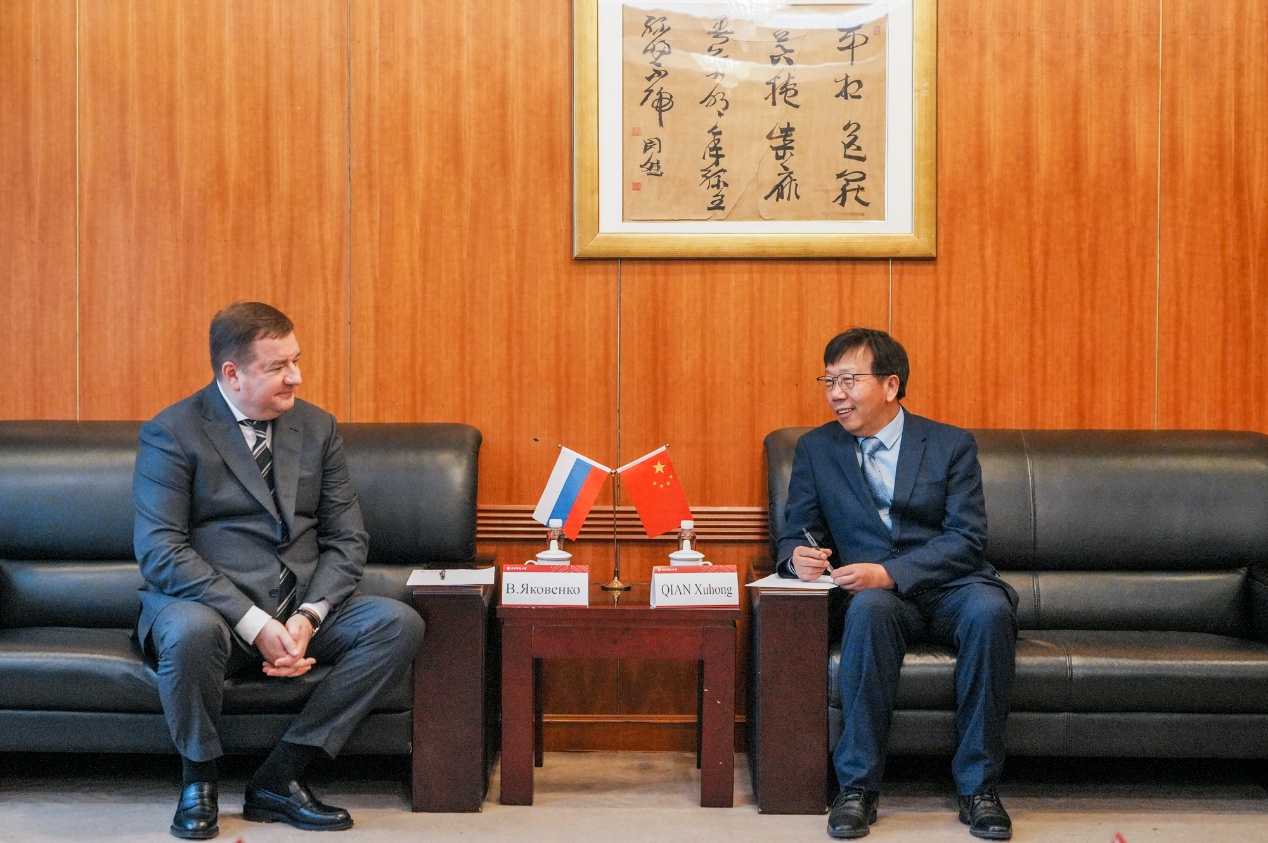 会谈中,钱旭红向代表团介绍了学校的最新发展情况。双方围绕深化中俄国有企业合作研究、加强青年人才交流互鉴、推动研究生双向互访、支持中国学生赴俄罗斯大型企业实习实践,以及携手推进科研成果转化落地等议题,展开了深入交流与探讨。