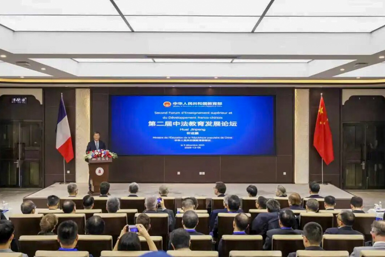 12月5日,中国教育部与法国高等教育、研究和空间事务部在四川成都共同举办第二届中法教育发展论坛。中国教育部部长怀进鹏与法国高等教育、研究和空间事务部部长菲利普·巴蒂斯特出席论坛并作主旨演讲。中国教育部副部长任友群主持论坛。来自中法两国百余所高校的负责人和专家学者参加论坛。