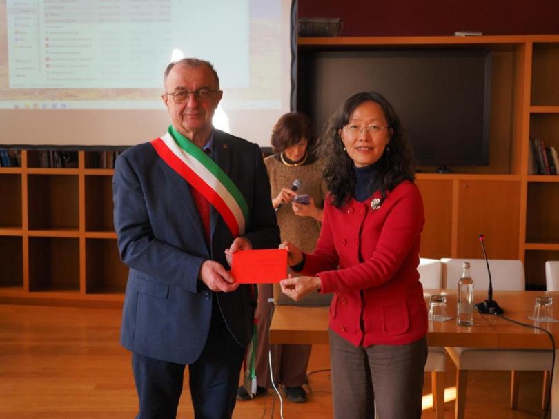 随后,嘉宾移步巴罗洛城堡,巴罗洛市长富尔维奥·马佐基(Fulvio MAZZOCCHI)致欢迎辞,欢迎到场的各界嘉宾。都大孔院两位院长向马佐基市长呈上中国驻米兰总领事馆的贺信,转达总领馆对此次盛事的关注与肯定。
