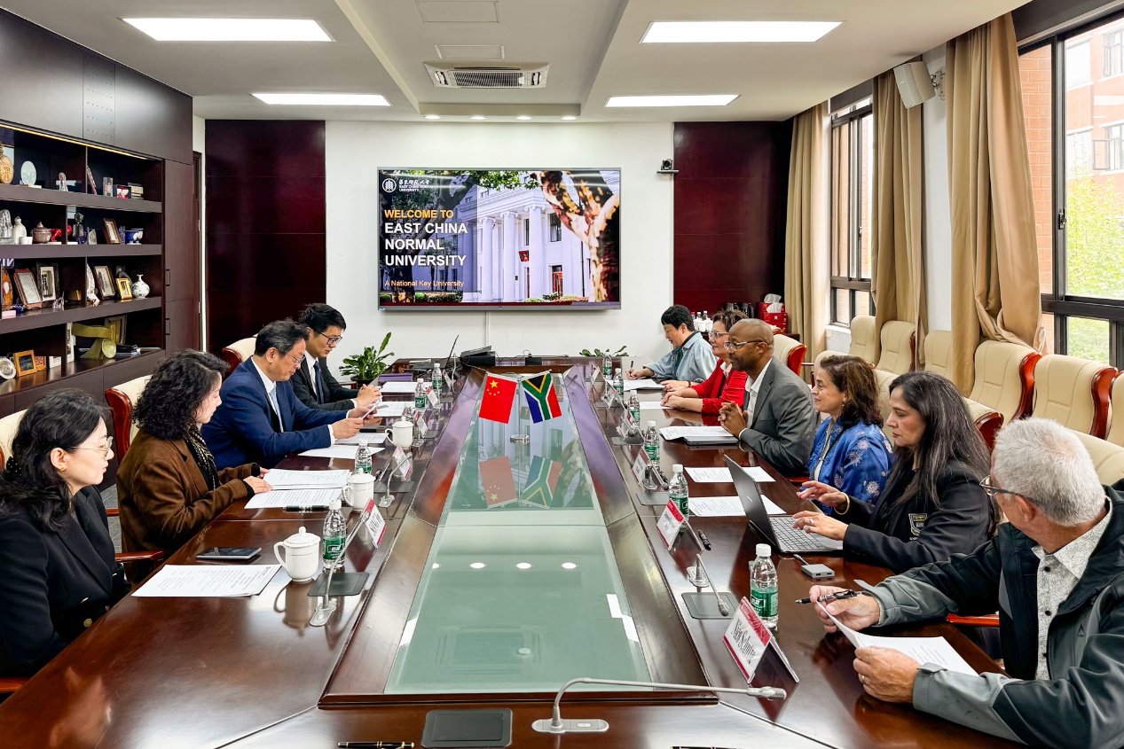 施国跃对代表团来访表示欢迎,并简要介绍了学校办学情况及国际化发展战略。他表示,华东师大高度重视与南非高校的交流合作,期待以此次来访为新的起点,深化两校务实合作,进一步拓展在教育数字化、出版研究、语言与文化传播等领域的合作空间,推动师生互访与联合科研提质增效。