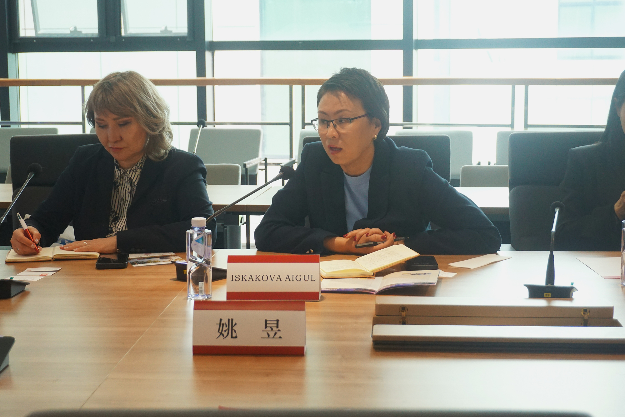 会谈中,华东师大国际合作与交流处副处长张锐详细介绍了学校整体办学概况、学科建设成果与新兴学科发展布局,并提出期待与哈萨克斯坦高校建立常态化、稳定化学术交流合作机制。社会主义历史与文献研究院常务副院长姚昱介绍了研究院发展历程、特色研究领域,重点阐述了研究院在中亚及哈萨克斯坦相关领域的研究成果,并表示希望进一步深化与哈萨克斯坦国立师范大学的科研合作,携手推动两校全方位交流发展。
