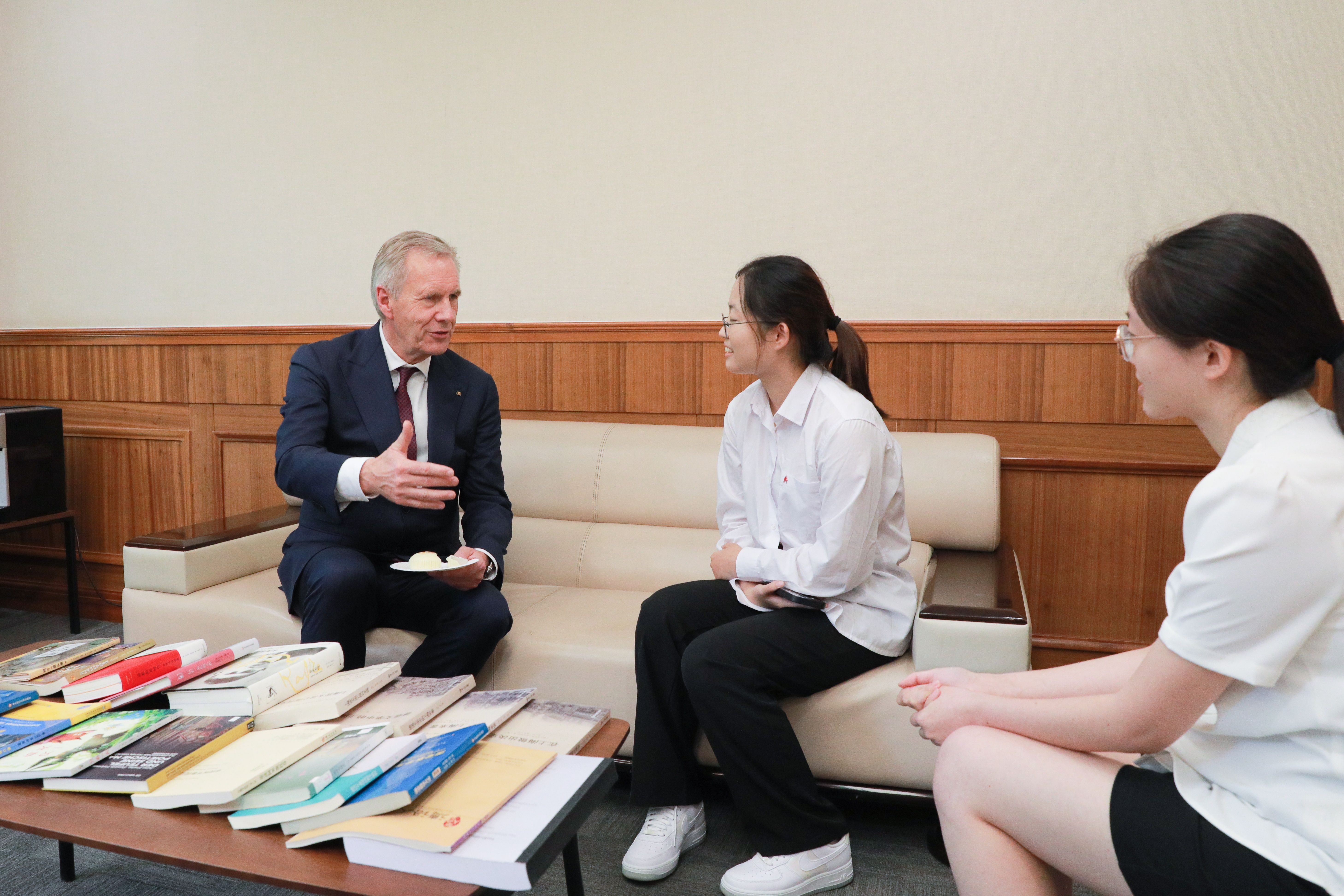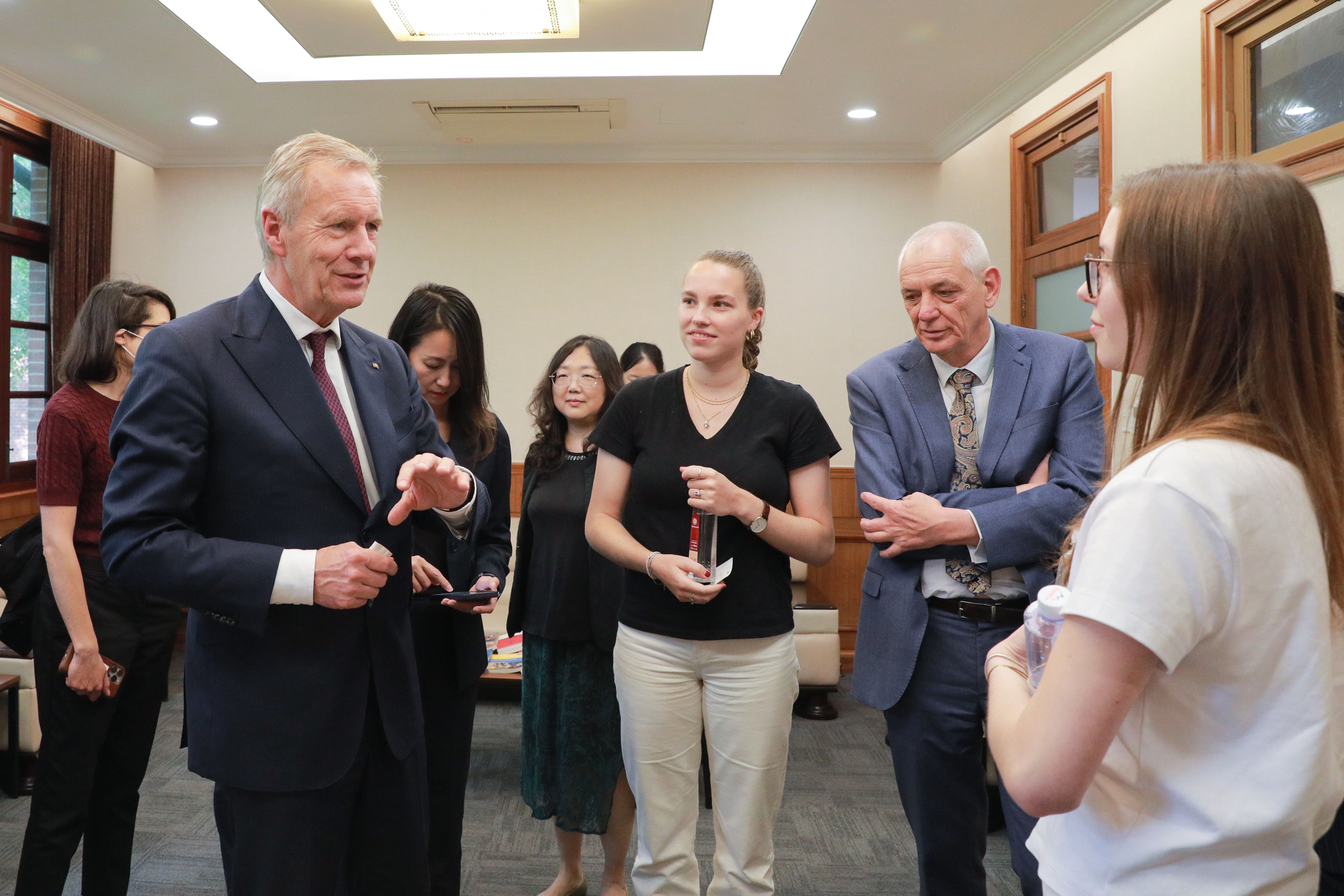 会后,武尔夫与德语系学生和在华东师大学习的德国留学生深入交流,高度赞赏华东师大青年学子的国际视野和跨文化沟通能力。