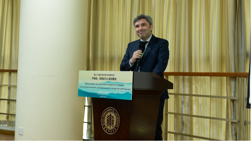 法国驻上海总领事王度先生在致辞中指出,华东师范大学是非常活跃的合作伙伴,在中法学术合作中占有重要地位。中法历史文化研讨班创办已有二十年,法国驻华大使馆和驻上海总领事馆一直积极支持此项交流活动。中法两国学者之间的专业交流是人文交流的重点。他强调,今年研讨班还是“中法环境月”活动之一,希望中法双方学者能通过探讨交流激励中法两国共同思考保护环境、应对生态挑战的行动,以确保子孙后代拥有可持续的未来。 华东师范大学历史学系副主任朱明在发言中谈到,华东师范大学历史学系与法国渊源颇深,感谢法国驻华大使馆、驻上海领事馆、法国史研究会等各方对历史学系的法国史建设的支持与帮助。历史学系作为主办方之一,已经举办了五次中法历史文化研讨班。他表示,很高兴法国驻华大使馆文化处将本次研讨班列入今年的中法环境月活动,期待研讨班取得丰硕的成果。 中国法国史研究会秘书长乐启良教授向大力支持中法历史文化研讨班的各方表示由衷的感谢。他指出,自2004年开始,中法历史文化研讨班已举办了二十届,每一届研讨班都会交流法国学界最近的课题、科研成果和研究方法,极大地推动了中国学术界的进步。希望法国驻华使馆、法国的高校科研机构、华东师范大学历史学系以及其他中国高校科研机构继续支持研讨班。 最后,法国社会科学高等研究院研究员Maurice AYMARD先生回顾了他自2004年以来参与中法历史文化研讨班的经历,向全体参与过研讨班的学者与学员们表达了崇高敬意。他强调今年是法国年鉴学派代表人物费尔南·布罗代尔逝世四十周年,作为布罗代尔的学生,他认为没有简单的欧洲史,只有一部人类的历史。他从与中国的学者与学生的交流讨论中获益匪浅,并开始以全新的目光来审视世界史以及学术活动。 开幕式在师生热烈的掌声中拉下帷幕。面对全球生态环境恶化、资源枯竭的严峻挑战,历史学者的责任不能局限于研究过去,更是为未来的可持续发展贡献智慧,这也是本届研讨班的主旨所在。参加开幕式的还有来自法国国家科研中心、巴黎第三大学、巴黎-西岱大学、中国社会科学院、复旦大学、浙江大学、中山大学、华南师范大学、上海师范大学、浙江师范大学、中共河南省委党校、上海科技大学、上海外经贸大学等二十余所机构的五十余名教师与硕博士研究生。 中法历史文化研讨班由华东师范大学、法国人文科学之家基金会、中国法国史研究会、浙江大学与法国巴黎第一大学于2004年创办,二十年来,中法学界跨越了疫情阻隔,以研讨班为平台展开交流对话,体现了双方学者着眼现实,不断在推进学术研究与文化交流层面所做的深度努力和尝试,同时也为国内师生学者了解国际学界前沿动态、丰富自身学术发展道路提供了平台与契机。