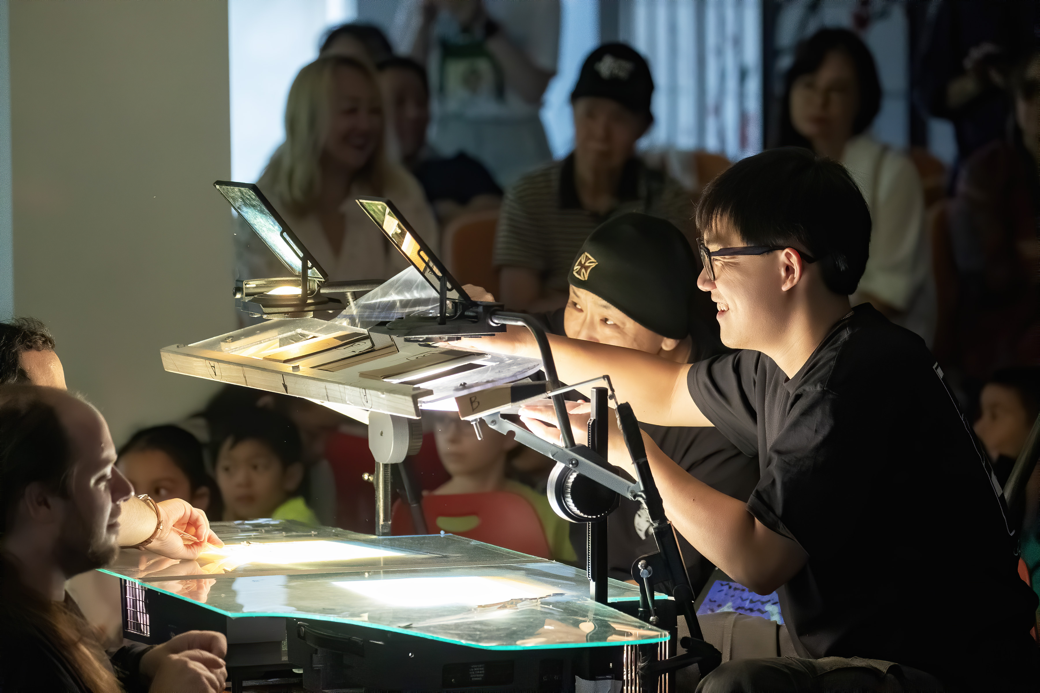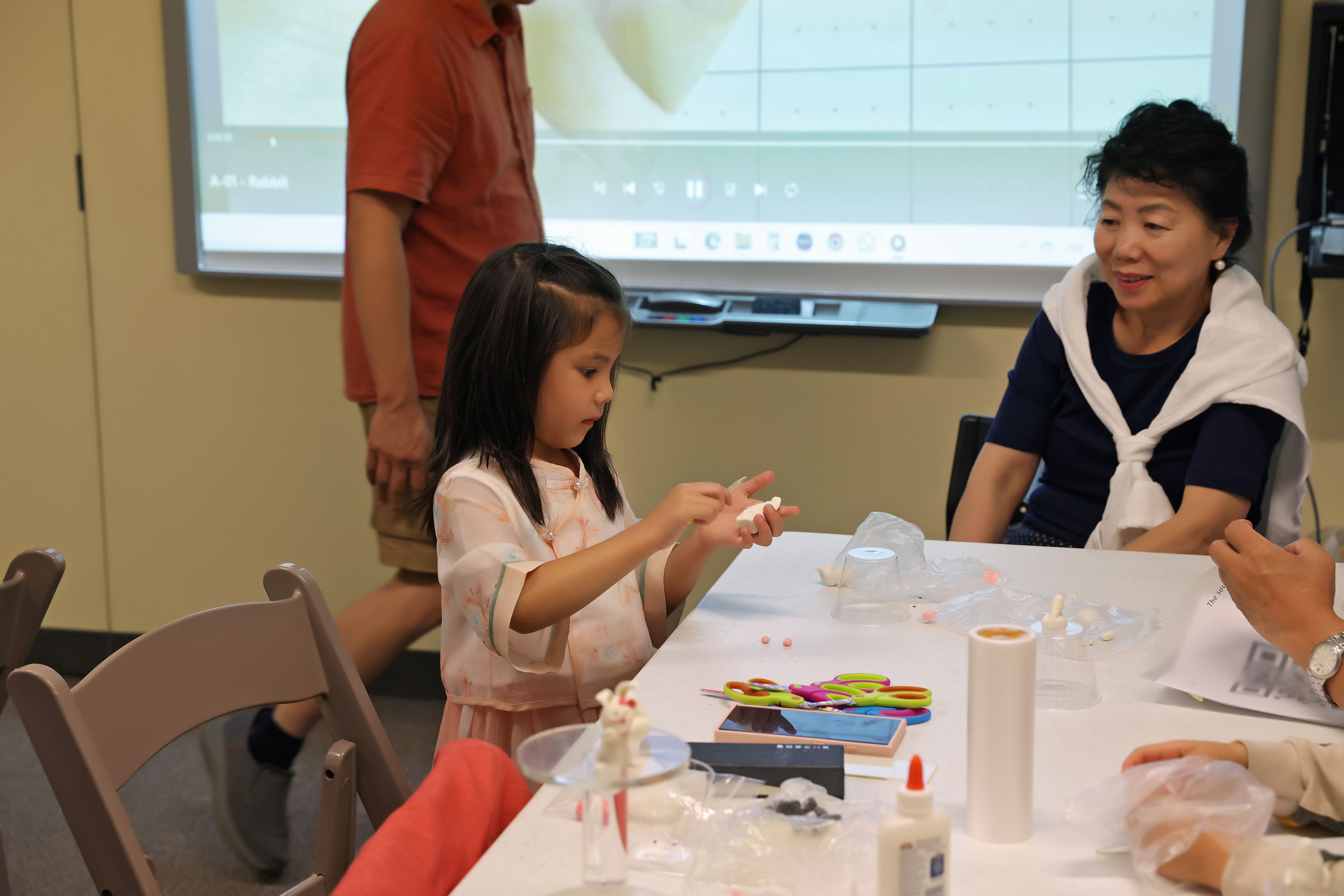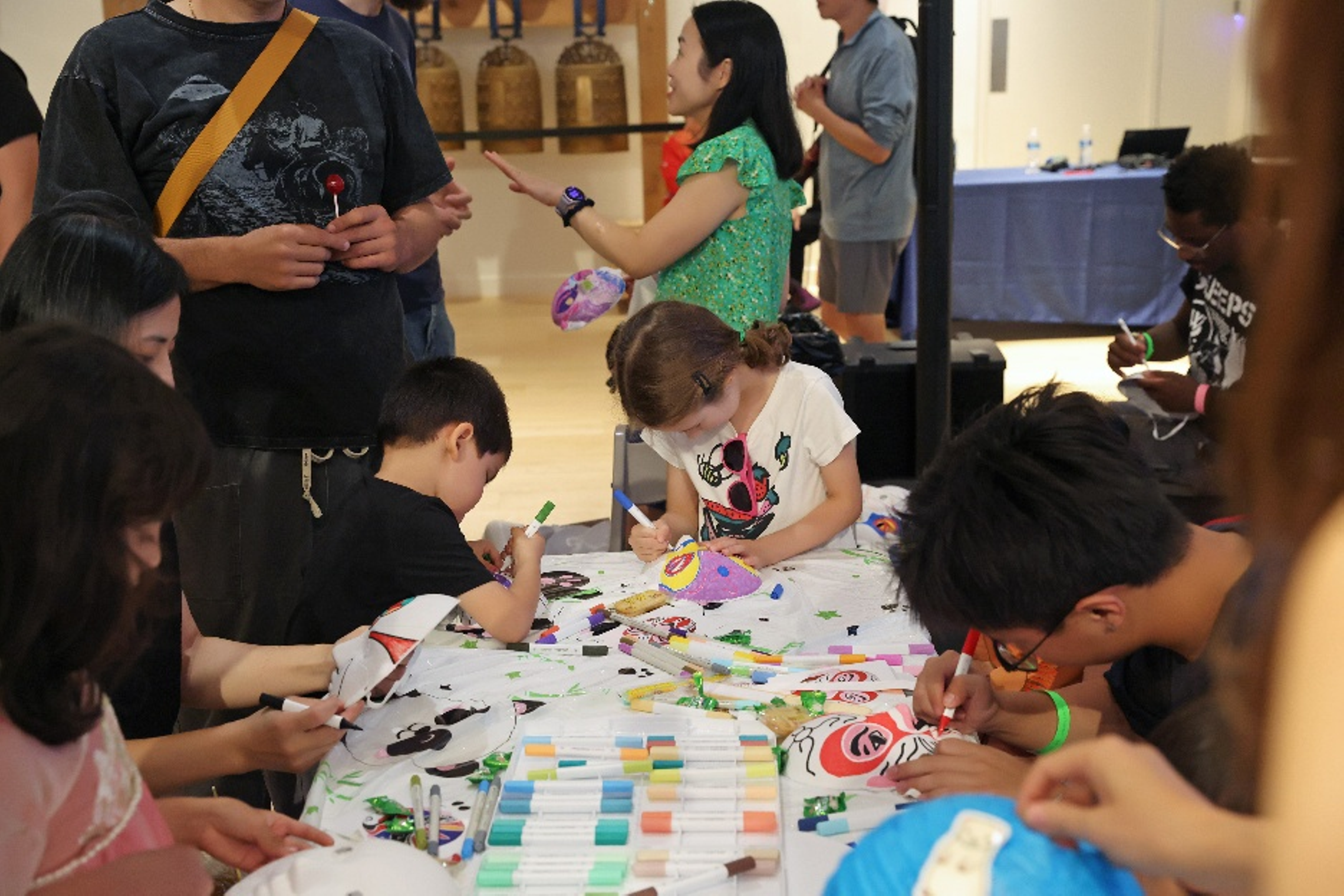 本次中秋节家庭开放日活动的互动区为参与者带来一场沉浸式体验。糖画摊位前,手艺人以糖为墨、以勺为笔,顷刻间便勾勒出灵动的飞鸟游鱼,引得观众连连称赞。漆扇区内,参与者巧借水漆相融的质感,在扇面上点染出流光溢彩的图案。脸谱绘画区同样气氛热烈,大家执笔蘸彩,在面具上描摹出各具特色的戏曲纹样,在与传统的对话中感受色彩背后的文化意蕴。