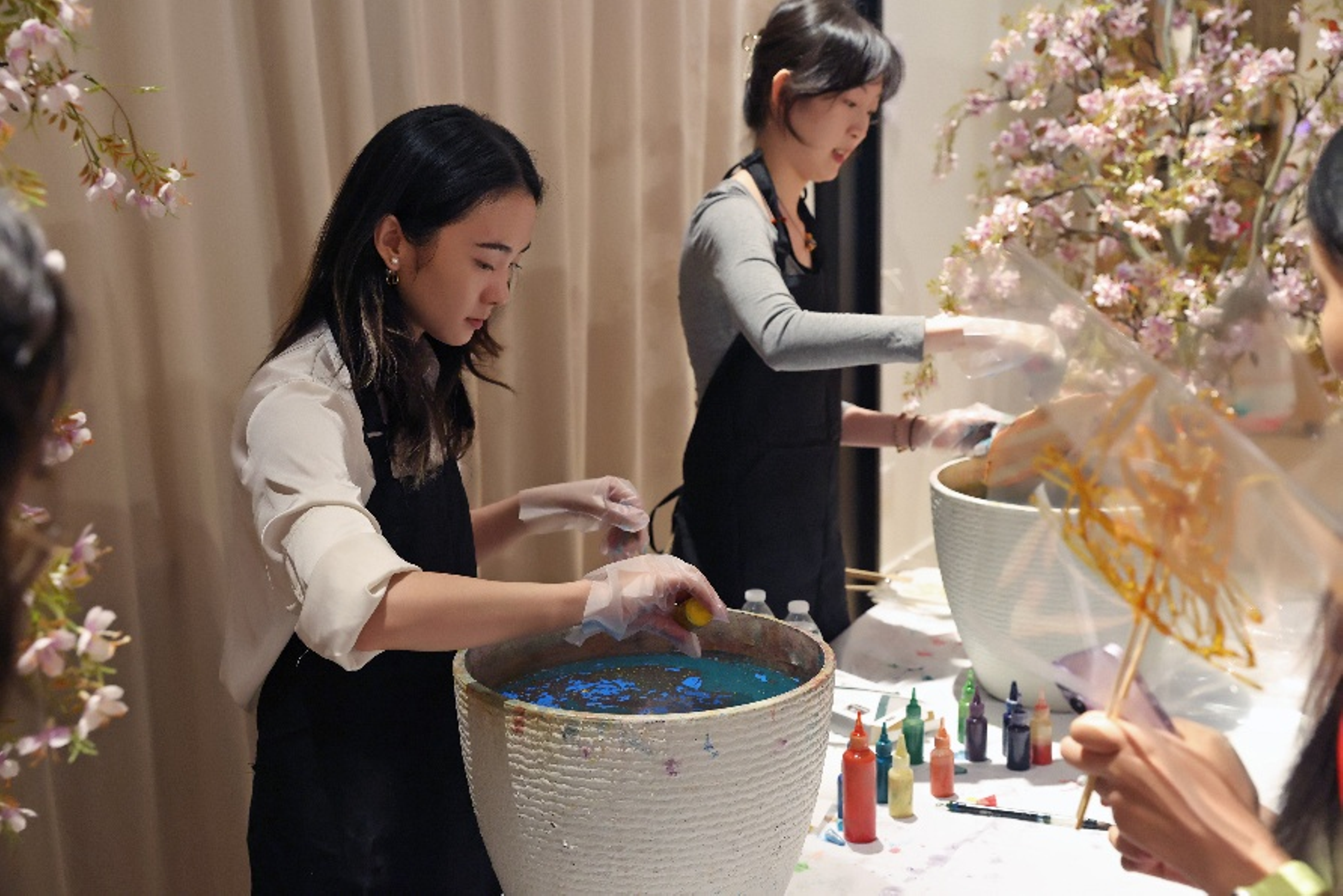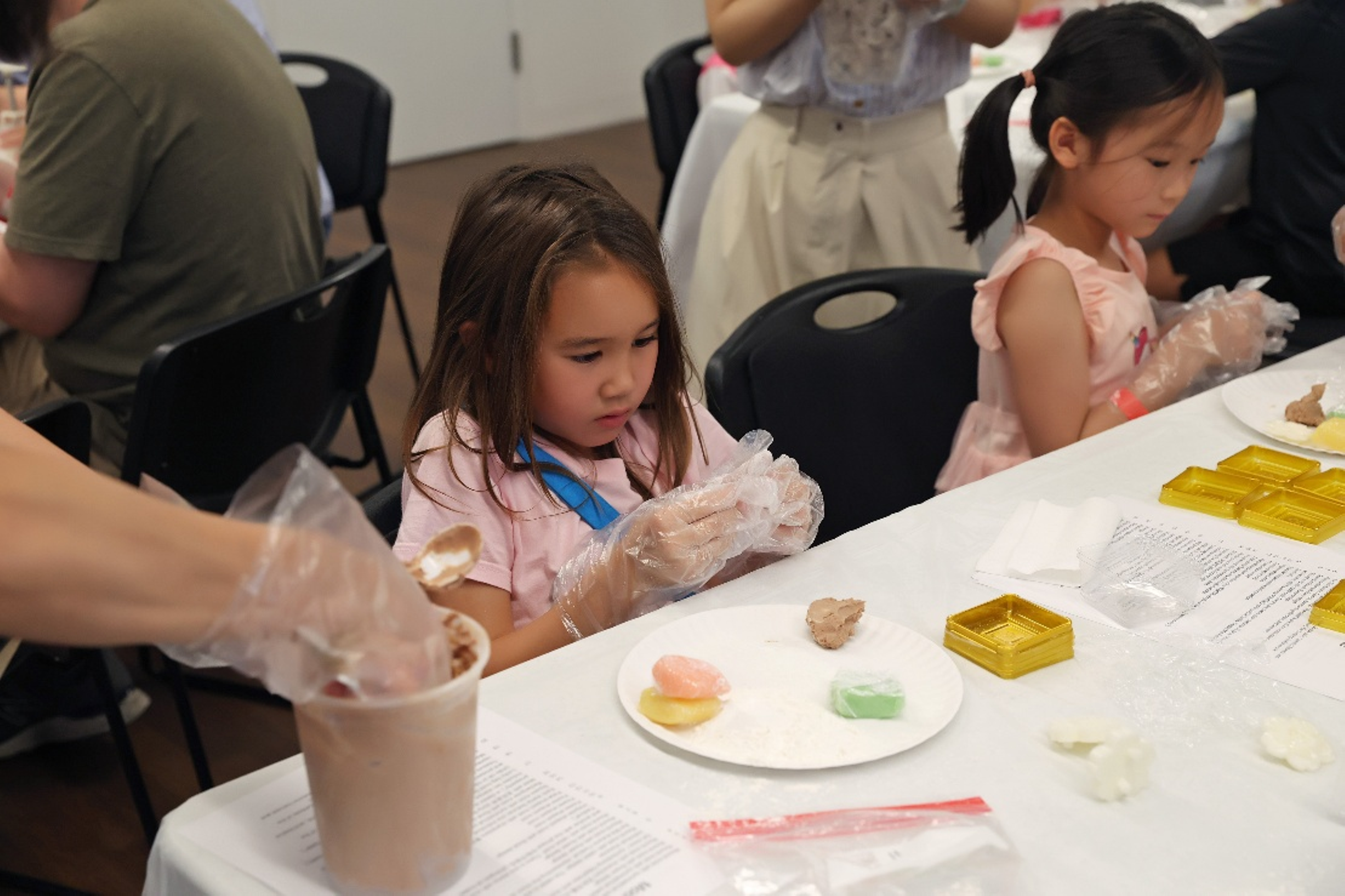 随后,多个文化工作坊同时进行:中国舞工作坊里,水袖翻飞间勾勒出诗意画卷;皮影戏工作坊则揭开千年非遗的神秘面纱,让观众亲手操控皮影人物演绎经典片段;米塑体验区巧手纷飞,米团在指端化作玉兔、明月等灵动造型;在美术中国工作坊中,参与者们在老师的指导下用画笔描绘水墨山川。月饼制作工作坊无疑是当天最具人气的焦点。与传统月饼不同,本次工作坊主打色彩斑斓的冰皮月饼,为这项古老习俗注入了全新的活力。在老师的指导下,参与者们将奥利奥、可可、抹茶与芝士等备受喜爱的现代馅料,小心翼翼地包入柔软的各色冰皮中,再压制成型。当一个个晶莹剔透、花纹精致的月饼在手中诞生时,惊喜的欢呼与成功的笑颜此起彼伏。这不仅是一次充满新意的味觉盛宴,更是对中秋传统的致敬。这场融视觉、听觉、味觉于一体的文化之旅,让中秋佳节的传统韵味在当代焕发出新的生命力。