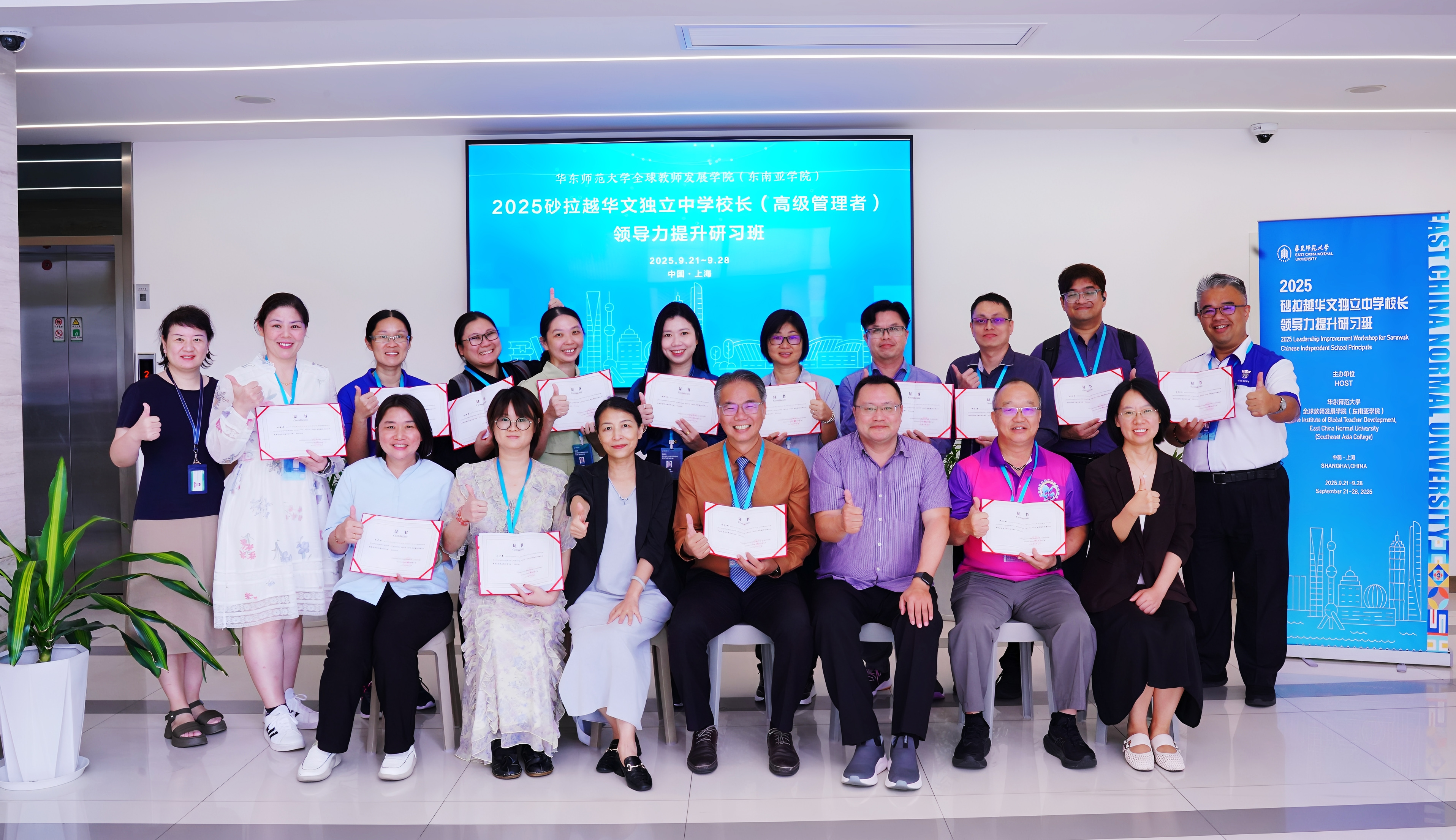 9月27日上午,由华东师范大学全球教师发展学院(东南亚学院)主办的“马来西亚砂拉越华文独立中学校长(高级管理者)领导力提升研习班”结业仪式在华东师范大学教师发展学院举行。华东师范大学国际合作与交流处副处长王素斌、教师发展学院党总支书记赵健、副院长魏非,以及来自马来西亚砂拉越地区全部14所华文独立中学的校长及管理人员共同出席并见证本次研习成果。
