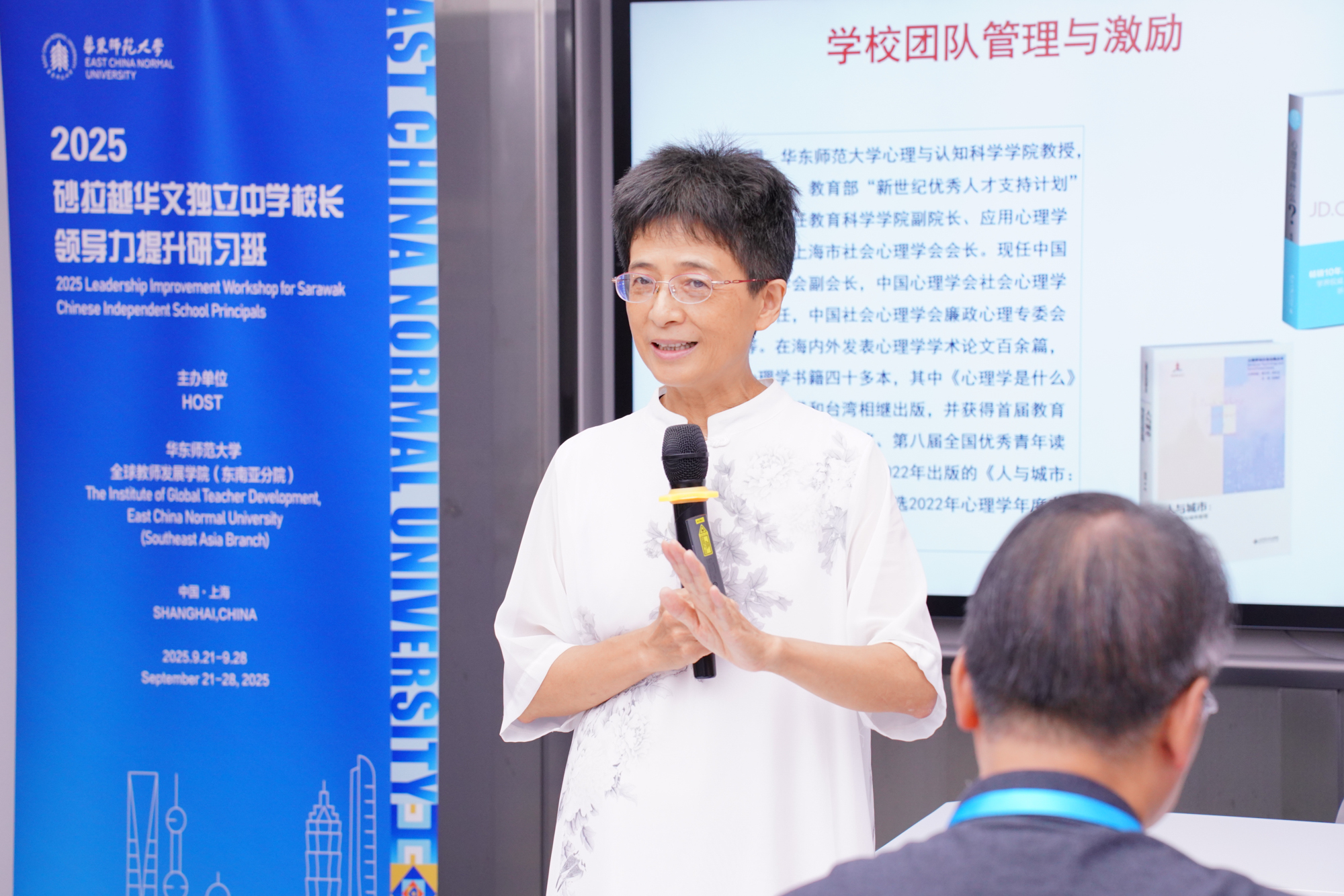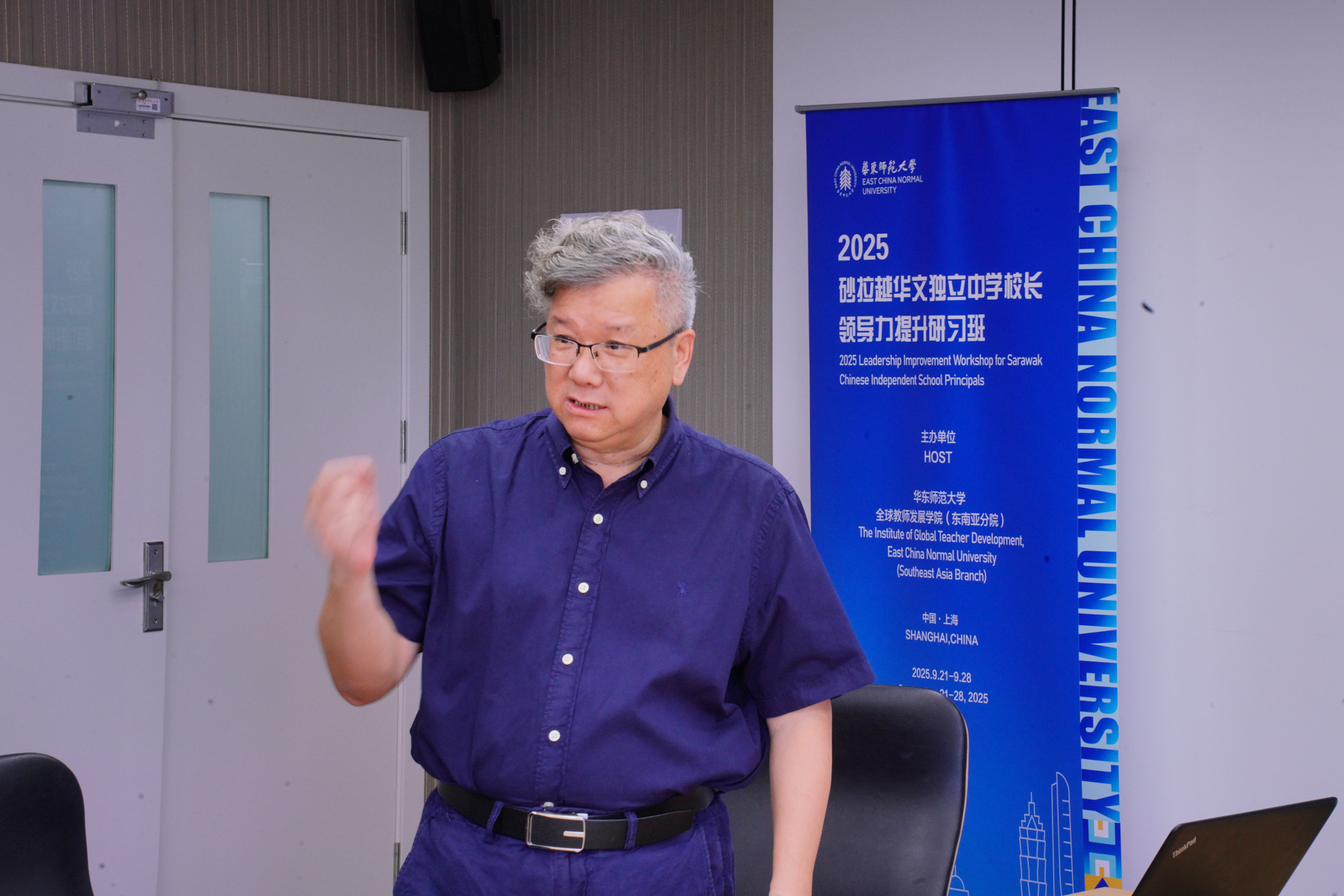 王素斌在致辞中充分肯定了各位校长在研习期间展现出的积极参与精神和深入思考能力。他指出,此次研修班的顺利实施,植根于华东师范大学与砂拉越华文教育界日益深厚的合作关系。他强调,本次校长研习班的举办,标志着双方的教育合作实现了从教师培训到校长发展、从单项交流到系统共建的重要升级,展现了合作关系的持续深化与拓展。